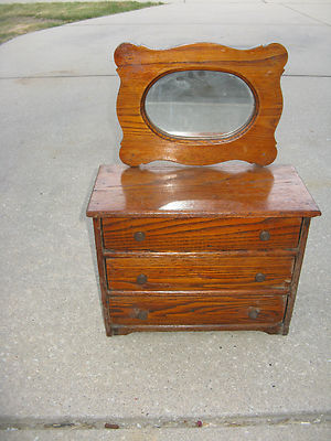 Title (ebay affiliate link): ANTIQUE OAK SALESMAN SAMPLE / CHILD'S DRESSER W/MIRROR 22" X 16" X 8"