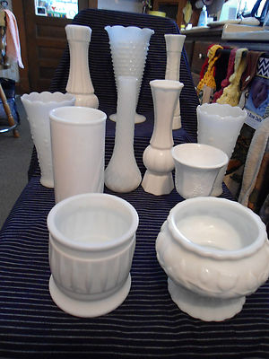 Title (ebay affiliate link): 11 OPAQUE WHITE MILK GLASS BUD VASES WEDDING FLORIST WEDDING PARTY SHOWER