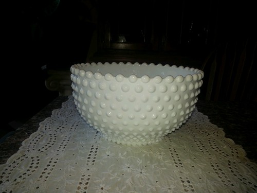 VINTAGE MILK GLASS HOBNAIL BOWL