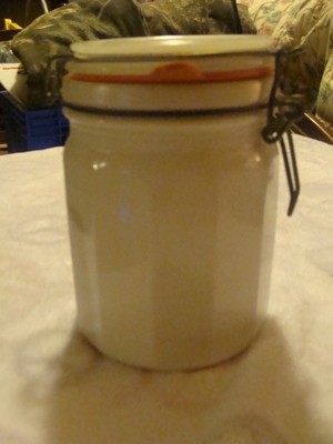 Title (ebay affiliate link): WHITE MILK GLASS 12 SIDED CANISTER JAR/WIRE BALE RUBBER SEAL. 6" Tall