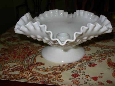 Vintage Ruffled Bowl Candle Holder Hobnail Milk Glass