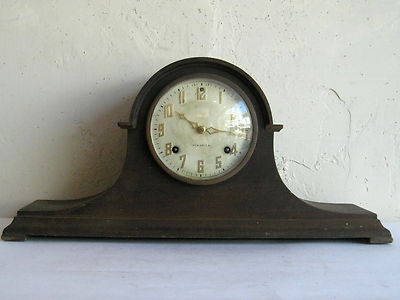 New Haven Clock Company Antique Wood Chime Camel Back Mantle Clock