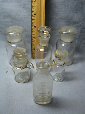 Title (ebay affiliate link): Lot of 6 Various Size Clear Glass Antique Apothecary Bottles