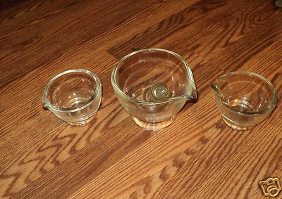 VINTAGE MORTAR AND PESTAL CLEAR GLASS SET ----3 BOWLS