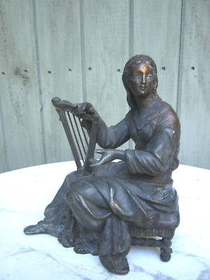 Title (ebay affiliate link): ANTIQUE ANSONIA HARPIST SPELTER CLOCK TOPPER