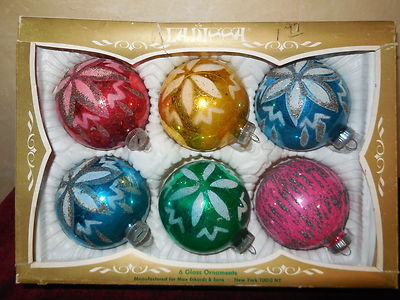 Title (ebay affiliate link): 6 Ladissa VINTAGE Glass Christmas Ornaments West Germany In Box Stencil Sparkles