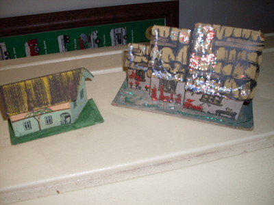 Title (ebay affiliate link): 2 VINTAGE CHRISTMAS PUTZ HOUSES ,CABINS OR COTTAGES /GLITTER, MARKED GERMANY