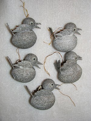 Title (ebay affiliate link): 5 Vintage Mica Glitter Bird Japan Paper Mache Silver Christmas Tree Ornaments