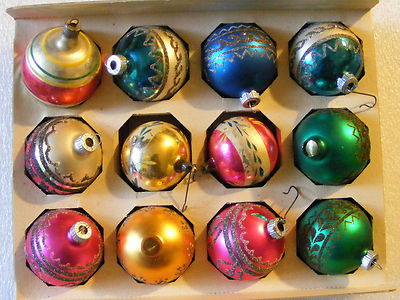 Title (ebay affiliate link): 12 Vintage 1940s CHRISTMAS ORNAMENTS IN BOX - SHINY BRITE New York City ECKHARDT