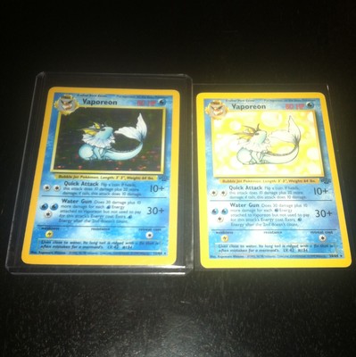 Title (ebay affiliate link): Pokemon Holo And Non-holo Vaporeon From Jungle Booster Pack NM/M