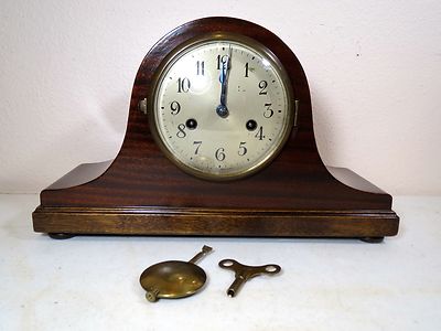 Title (ebay affiliate link): Antique Gustav Becker Tambour Mantle Clock Time & Strike Nice Wood Case German