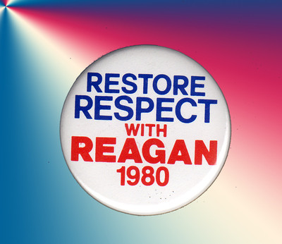 Title (ebay affiliate link): RESTORE RESPECT with REAGAN - 1 3/4" Campaign Button w/safety pin