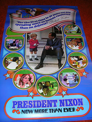 ORIGINAL RICHARD NIXON LARGE HUMAN RIGHTS POSTER 1972 CAMPAIGN MINT