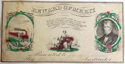 Title (ebay affiliate link): Antique Reward of Merit William Harrison Early Steam Train Water Color 1840's