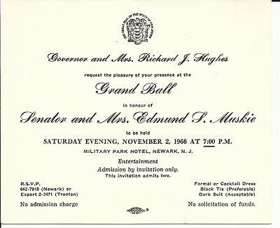 Title (ebay affiliate link): NJ GOVERNOR HUGHES INVITE TO GRAND BALL HONORING MUSKIE - NOV 2, 1968 in NEWARK