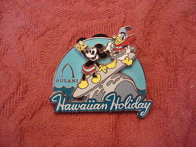 Title (ebay affiliate link): Disney Aulani - Hawaiian Holiday - Mickey and Donald Surfing 3D Pin