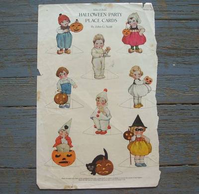 Title (ebay affiliate link): Vtg 1920 LHJ Halloween Party Place Cards Children Paper Dolls John G. Scott