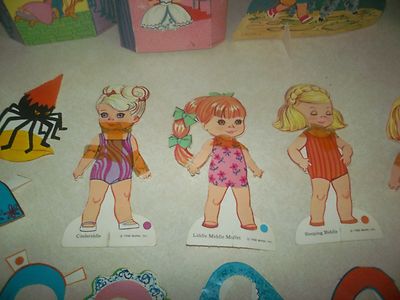 Vintage Liddle Biddle, Middle, Cinderiddle paper doll Set 1968 58 piece set