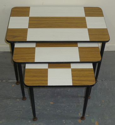 Title (ebay affiliate link): 1960's Formica Mid Century Modern Chequerboard Retro Nest of Coffee Tables