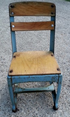 Title (ebay affiliate link): Vintage Envoy Childs School Chair Metal Wood American Seating #11 Blue Paint