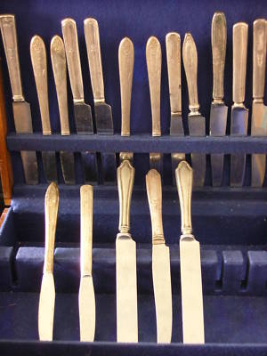 Title (ebay affiliate link): Antique Silverplate Stainless Steel Knife Set, 17 pcs.