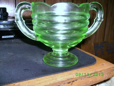 vintage glass sugar bowl green