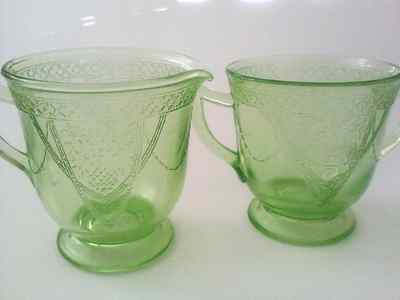 Title (ebay affiliate link): Vintage Federal Green Depression Glass Cream & Sugar 1920-1930