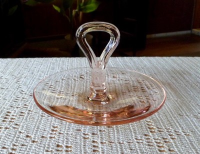 Title (ebay affiliate link): Vintage Pink Depression Glass Mint Serving Dish w/Center Handle