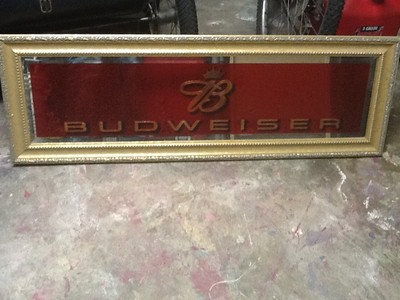 Title (ebay affiliate link): Budweiser Red Mirrored Sign w/Gold Wooden Frame