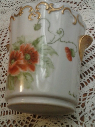 Title (ebay affiliate link): Red Poppies Hand Painted Signed Gold Trim Porcelain Vase. Floral Cookie g.