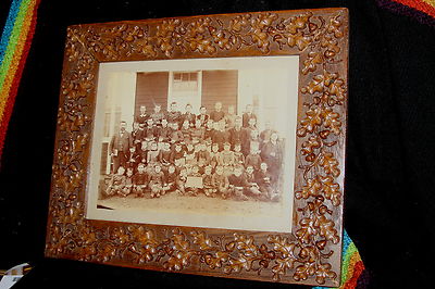 Vintage East Lake Arts & Crafts Adirondach Picture Frame Oak Acorns School Kids