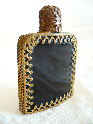Antique Dark Amethyst Glass Perfume Gilded Filigree Bottle POMPADOUR Austria