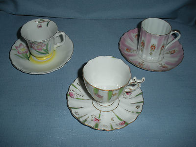 Lot of Three Pretty Demi Tea Cup and Saucer #6