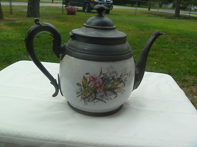 VICTORIAN MANNING BOWMANN & CO.ANTIQUE ENEMAL & PEWTER TEA POT /