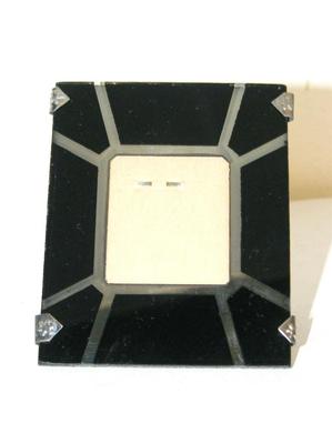 VINTAGE ART DECO BLACK SILVER REVERSE PAINTED PICTURE FRAME 2 3/4'' x 3 1/2''