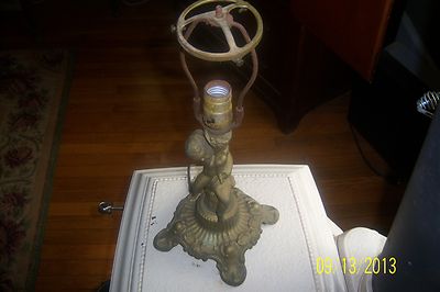 slag glass lamp base metal antique no shade works table light cherub vintage