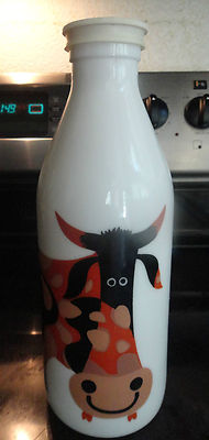 VINTAGE EGIZIA ITALY WHITE GLASS MILK BOTTLE Screen Printed Label #4