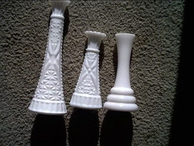 Lot of 3 Vintage White Milk Glass Flower Bud Vases