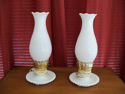 Vintage Milk Glass Hobnail Hurricane Lamps