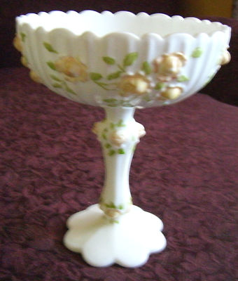 Title (ebay affiliate link): Fenton 7.5" Milk Glass Pedestal Compote Candy Dish - Yellow Roses Scalloped Rim