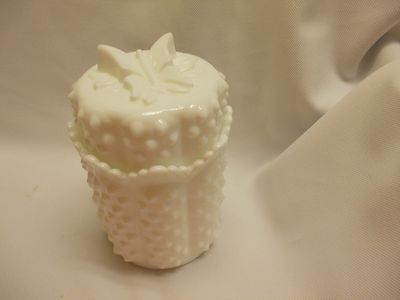 vintage embossed Fenton hobnail white milk glass Butterfly top candy cannister