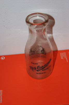 Title (ebay affiliate link): Vintage Milk Consumers assn Dairy Dekalb Illinois Pint Glass Milk Bottle