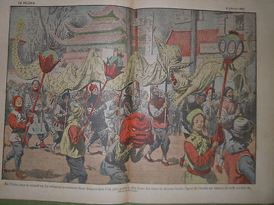 Old Print 1921 China Large Color Engraving Chinese New Year Nouvel An Chinois
