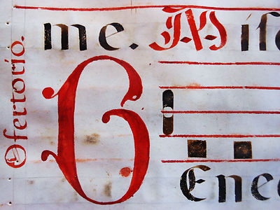 Title (ebay affiliate link): c.1600 Spain: Large manuscript vellum leaf #86 from a Roman Catholic Missal.
