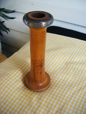 Title (ebay affiliate link): Antique Textile Wood Bobbin Vintage Spool Primitive Grungy Candles Candle Holder