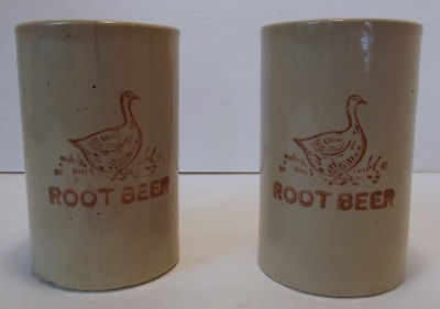 Title (ebay affiliate link): Lot Set of 2 Vintage Antique Cream Stoneware Root Beer Mugs Duck Goose