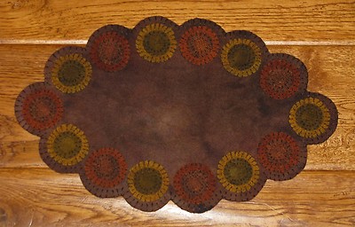 Title (ebay affiliate link): Primitive Wool Penny Rug ~ Handstitched ~ Oval With Scalloped Edge