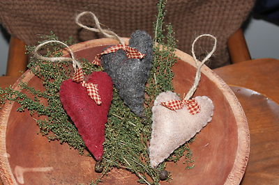 Title (ebay affiliate link): 3 Primitive Valentine Heart Rusty Bell twine & homespun Ornies/Bowl Fillers