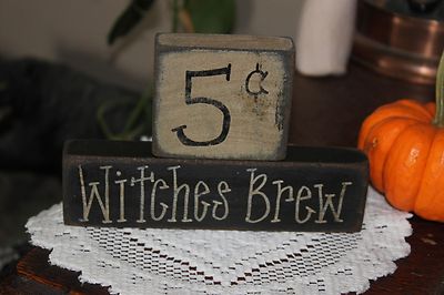 Title (ebay affiliate link): Primitive Halloween/Fall/Autumn Wood Block Shelf Sitter (5 cents WITCHES BREW)
