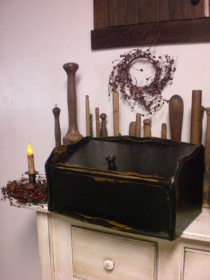 Title (ebay affiliate link): Primitive Black Wooden Breadbox ~ Wood Bread Box ~ Keeping Box